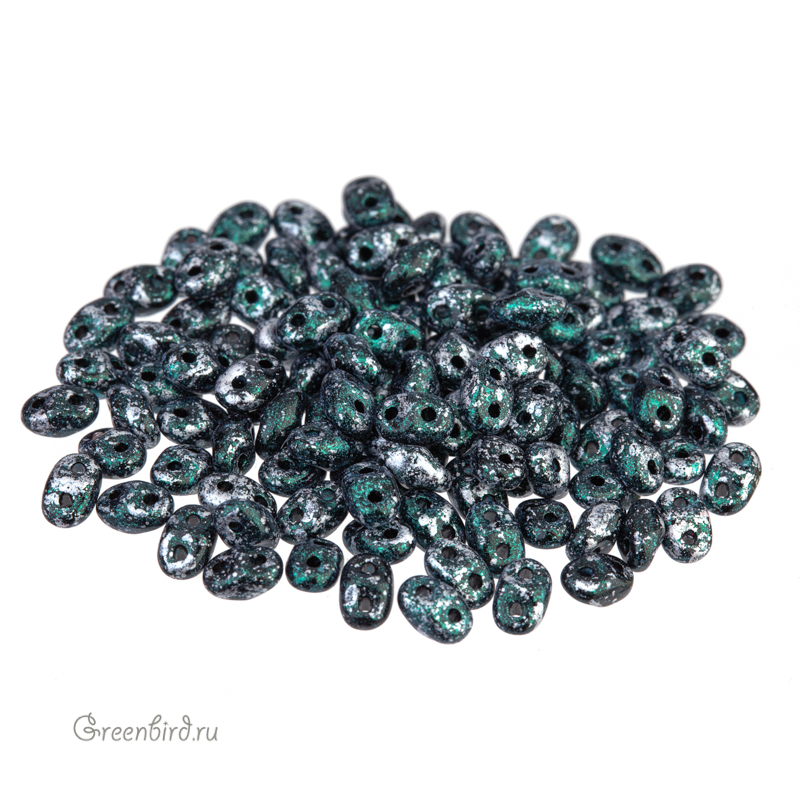 Бусины MiniDuo (стекло). Цвет: #45707JT (зеленый твид). Размер: 2,5 x 4 мм, отверстие: 0,7 мм. Производство: Чехия. Цена указана за 5 грамм (примерно 110 штук).