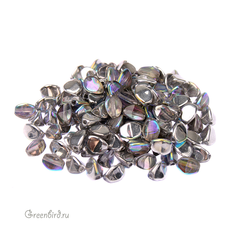 Бусины Pinch Beads (стекло). Цвет: #00030/98530 (радужный, хрусталь/серебро). Размер: 5,3 x 3,7 мм, отверстие: 0,8 мм. Производство: Чехия. Цена указана за 10 грамм (примерно 130 штук).