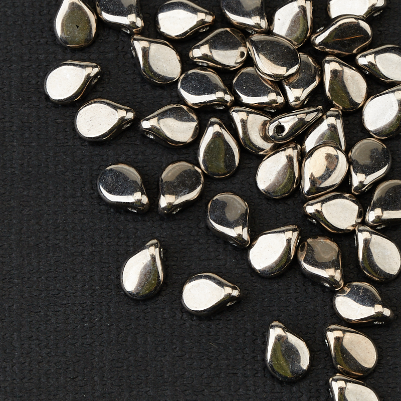 Бусины Pip Beads (стекло). Цвет: #23980/27500 (черный/серебро, полное покрытие). Размер: 5 x 7,3 мм, отверстие: 0,8 мм. Производство: Чехия. Цена указана за 5 грамм (примерно 36 штук).