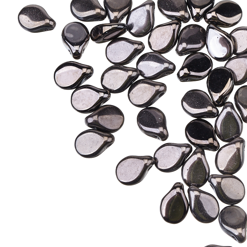 Бусины Pip Beads (стекло). Цвет: #23980/27400 (черный/хром, полное покрытие). Размер: 5 x 7,3 мм, отверстие: 0,8 мм. Производство: Чехия. Цена указана за 5 грамм (примерно 36 штук).