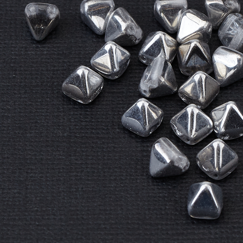 Pyramid Bead, бусины-пирамидки (стекло). Цвет: #S00030 (серебро/хрусталь). Размер: 6,2 x 6,3 х 6,6 мм, два отверстия: 0,7 мм. Производство: Чехия. Цена указана за 20 штук.