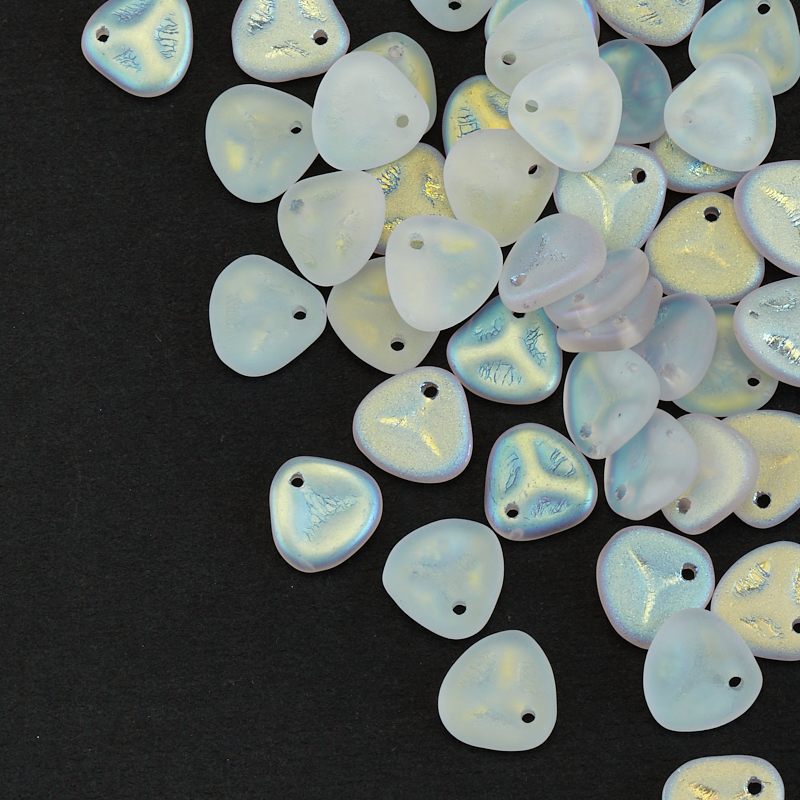 Бусины Rose Petals – лепестки розы (стекло). Цвет: #00030/28771 (матовый, хрусталь/радужный). Размер: 8 x 7,5 мм, отверстие: 0,8 мм. Производство: Чехия. Цена указана за 10 грамм (примерно 42 штуки).