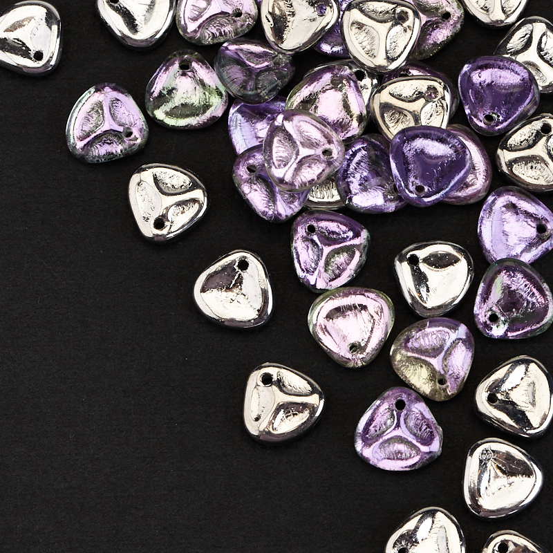 Бусины Rose Petals – лепестки розы (стекло). Цвет: #00030/26536 (серебристый, фиолетово-розовый). Размер: 8 x 7,5 мм, отверстие: 0,8 мм. Производство: Чехия. Цена указана за 10 грамм (примерно 42 штуки).