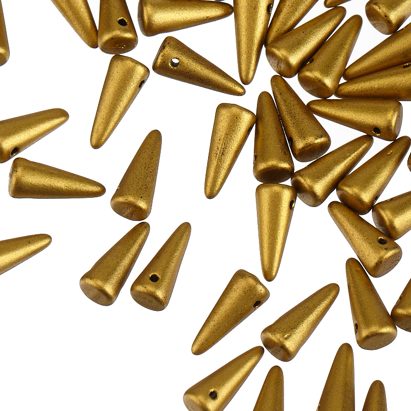 Бусины Spikes (стекло). Цвет: #K0172JT (непрозрачный, матовый металлик, золото ацтеков). Размер: 4 x 10 мм, отверстие: 0,8 мм. Производство: Чехия. Цена указана за 10 грамм (примерно 50 штук).