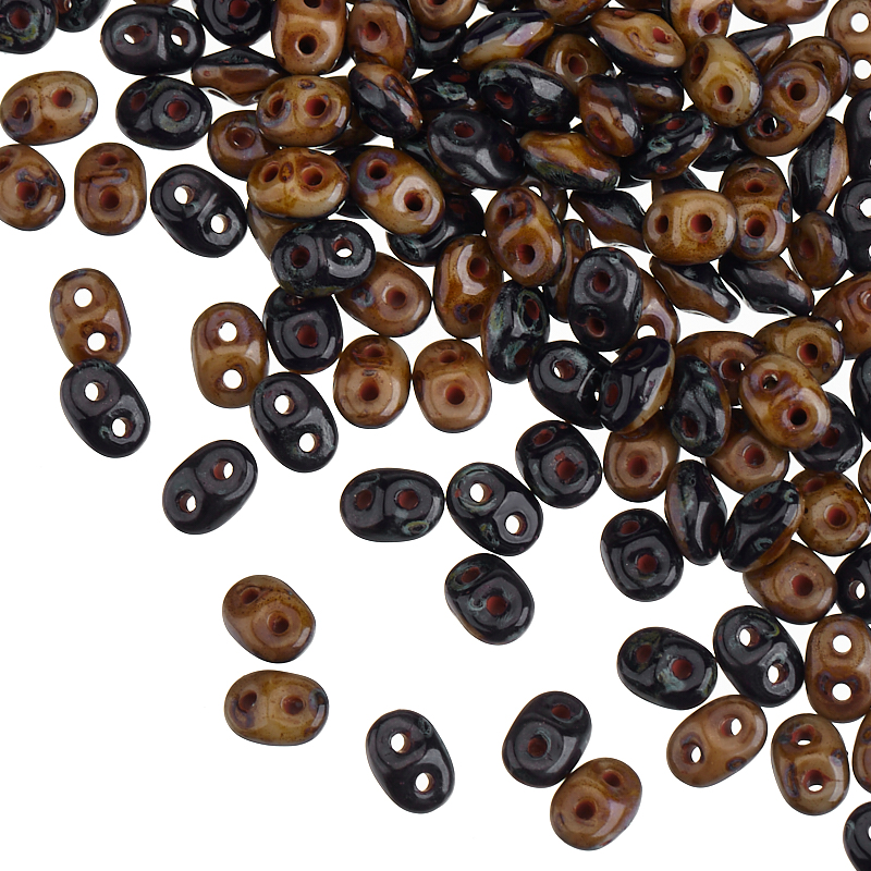 Бусины SuperDuo (стекло). Цвет: #33413/86800 (темно-синий/слоновая кость, травентин). Размер: 2,5 x 5 мм, отверстие: 0,8 мм. Производство: Чехия. Цена указана за 10 грамм (примерно 120 штук).