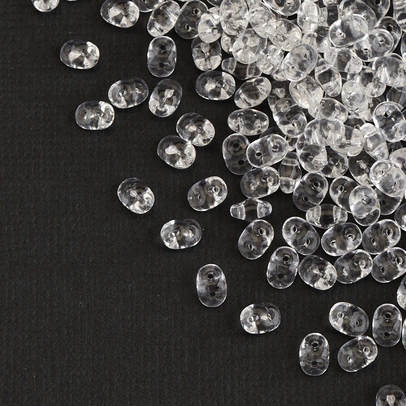 Бусины SuperDuo (стекло). Цвет: #00030 (прозрачный, хрусталь). Размер: 2,5 x 5 мм, отверстие: 0,8 мм. Производство: Чехия. Цена указана за 10 грамм (примерно 120 штук).