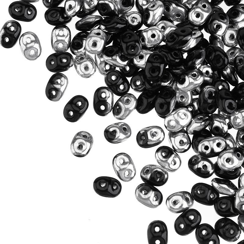 Бусины SuperDuo (стекло). Цвет: #S23980 (серебро/черный). Размер: 2,5 x 5 мм, отверстие: 0,8 мм. Производство: Чехия. Цена указана за 10 грамм (примерно 120 штук).