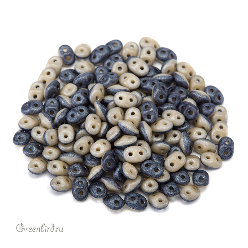 Бусины SuperDuo Duets (стекло). Цвет: #533413/84110(темно-синий / слоновая кость, матовый). Размер: 2,5 x 5 мм, отверстие: 0,8 мм. Производство: Чехия. Цена указана за 10 грамм (примерно 120 штук).