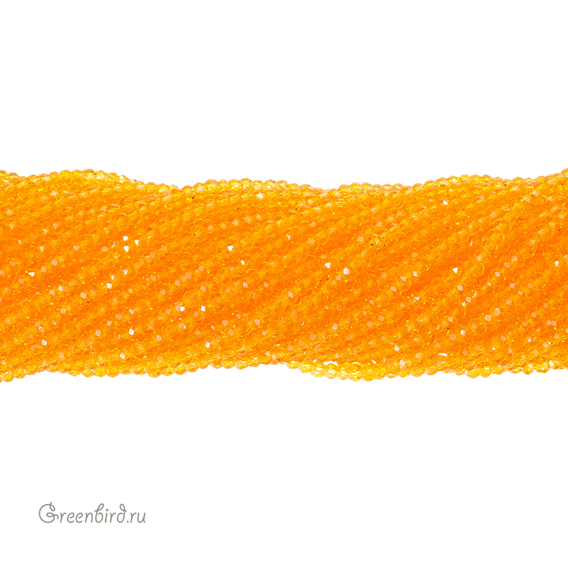 Бусины граненые Rondelle. Материал: стекло. Цвет: светлый оранжевый. Размер: от 2,3 х 1,5 мм до 2,6 х 1,9 мм, отверстие: 0,5-0,6 мм. Цена указана за нить 31-32 см (примерно 130 штук).