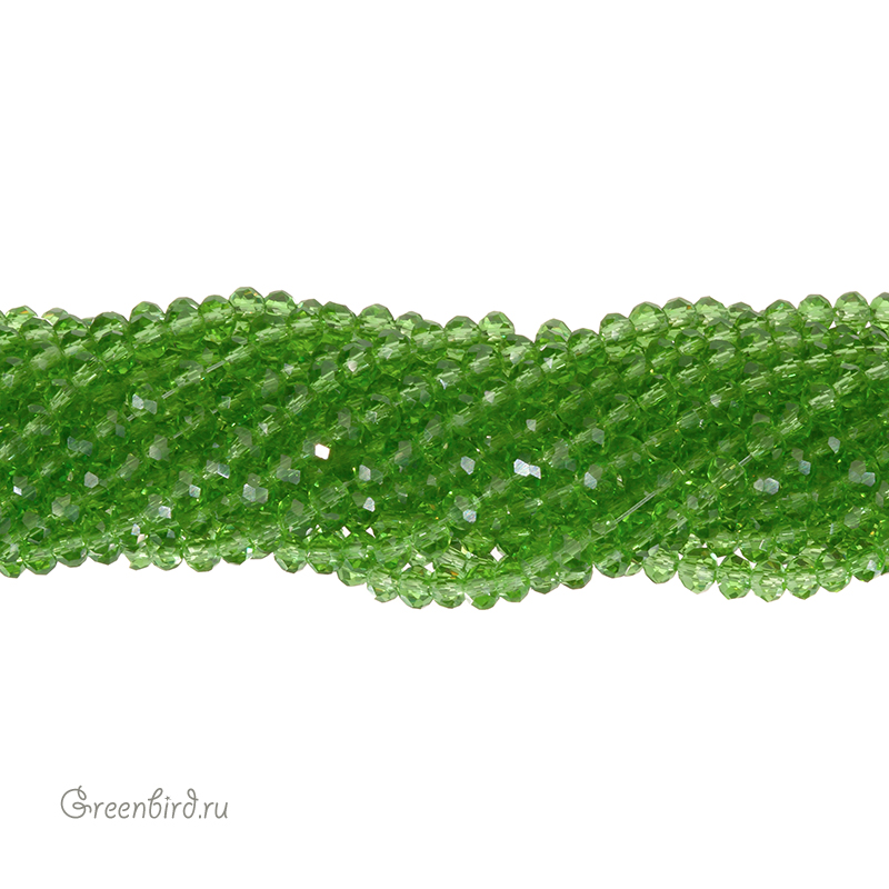 Бусины граненые Rondelle. Материал: стекло. Цвет: травяной светло-зеленый (прозрачный), с выраженным эффектом Fire Polished (отполированные бусины), без покрытия. Размер: от 2,9 х 1,95 мм до 3,1 х 2,25 мм, отверстие: 0,5-0,6 мм. Цена указана за нить (примерно 180 штук).