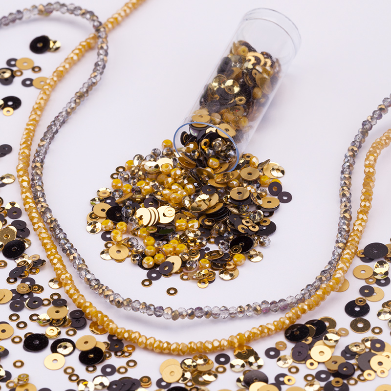 Фирменный микс граненых бусин ронделей и пайеток от GreenBird. Микс используется в декоративной вышивке, при создании украшений, идеален для работы в свободной технике.