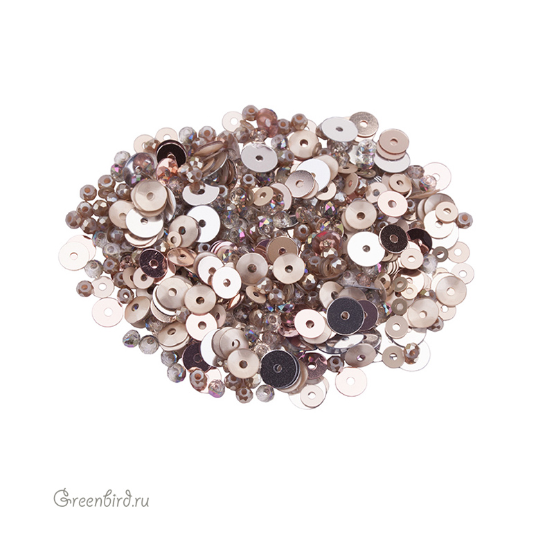 Фирменный микс граненых бусин ронделей и пайеток от GreenBird. Микс используется в декоративной вышивке, при создании украшений, идеален для работы в свободной технике.