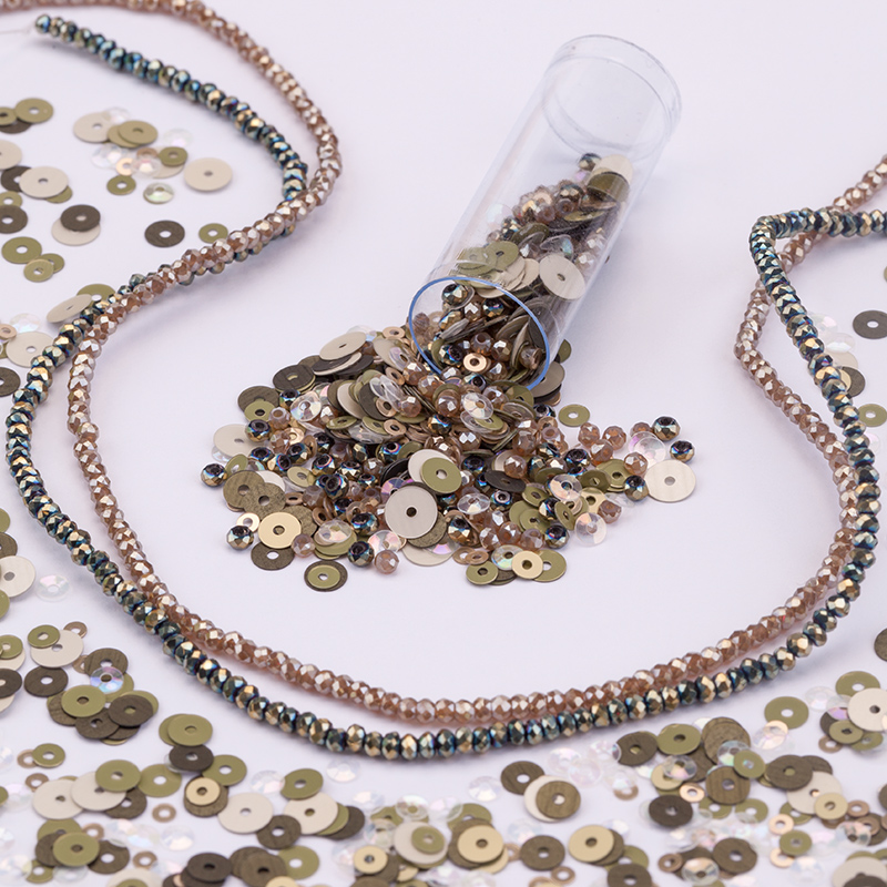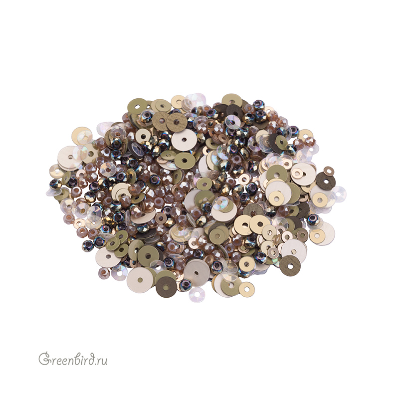Фирменный микс граненых бусин ронделей и пайеток от GreenBird. Микс используется в декоративной вышивке, при создании украшений, идеален для работы в свободной технике.