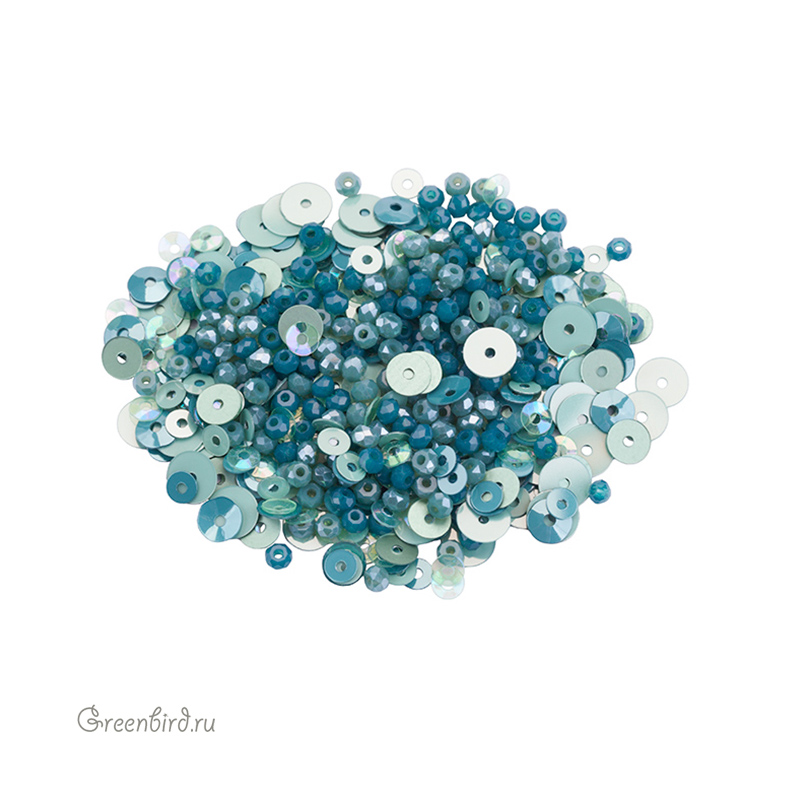 Фирменный микс граненых бусин ронделей и пайеток от GreenBird. Микс используется в декоративной вышивке, при создании украшений, идеален для работы в свободной технике.