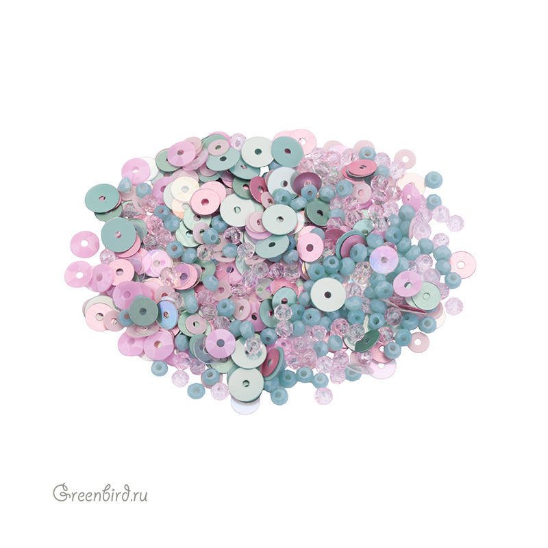 Фирменный микс граненых бусин ронделей и пайеток от GreenBird. Микс используется в декоративной вышивке, при создании украшений, идеален для работы в свободной технике.