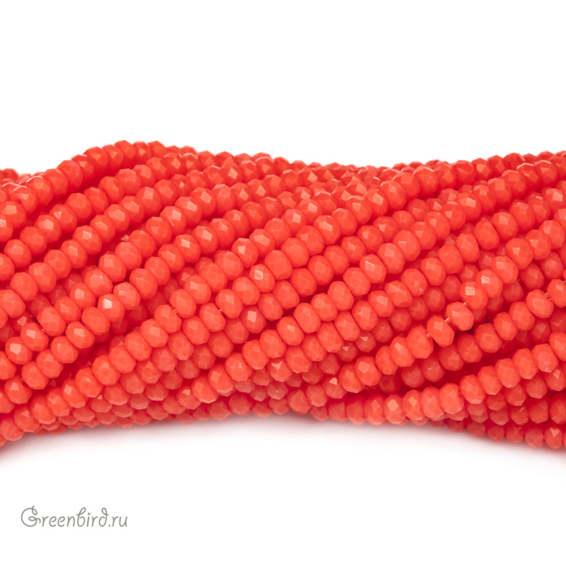 Бусины граненые Rondelle. Материал: стекло. Цвет: оранжевый (практически не прозрачный) с эффектом Fire Polished (отполированные бусины) и легким дымчатым эффектом, без покрытия. Обратите внимание: в зависимости от партии оттенок может отличаться. Размер: от 2,5 х 1,6 мм до 2,6 х 1,7 мм, отверстие: 0,5-0,6 мм. Цена указана за нить (примерно 130 штук).