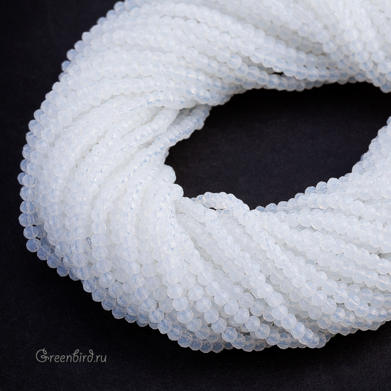 Бусины граненые Rondelle. Материал: стекло. Цвет: опалит, белый с легким голубоватым оттенком и с желтоватым оттенком на просвет (полупрозрачный, дымчатый). Размер: от 3,2 х 2,6 мм до 3,5 х 2,8 мм, отверстие: 0,7-0,8 мм. Цена указана за нить (примерно 140 штук).
