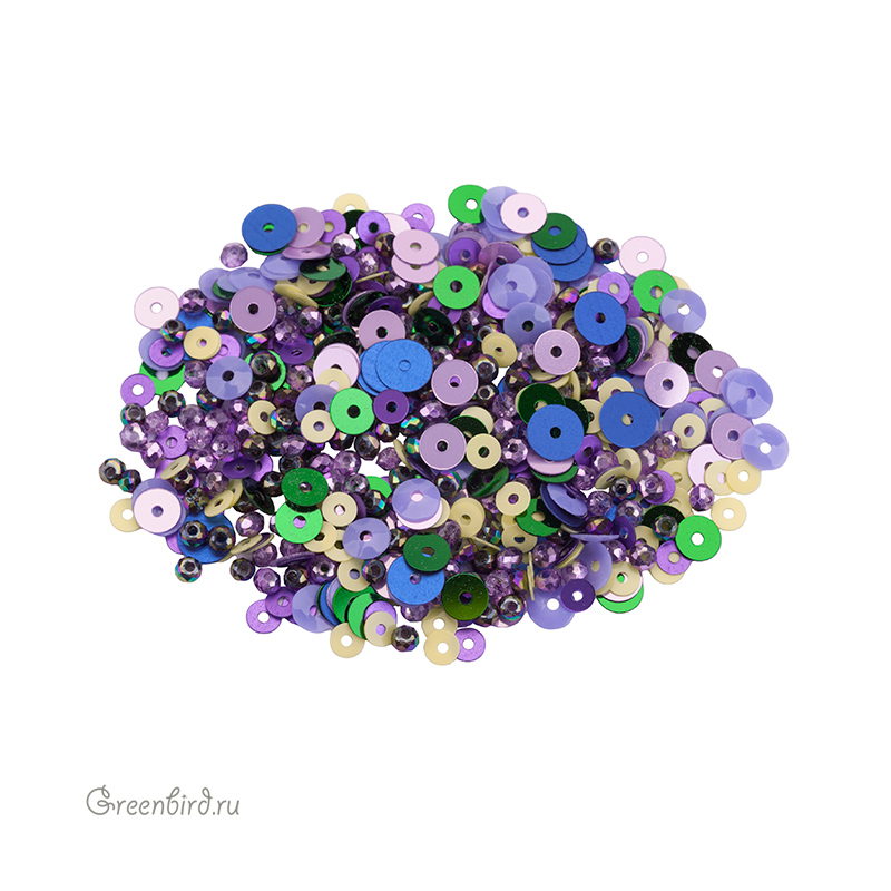 Фирменный микс граненых бусин ронделей и пайеток от GreenBird. Микс используется в декоративной вышивке, при создании украшений, идеален для работы в свободной технике.