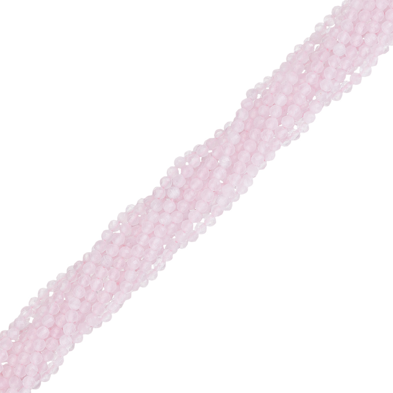 Бусины стеклянные граненые, круглой формы, имитация розового кварца. Материал: синтетический камень, цвет: полупрозрачный розовый. Размер: 3 мм, диаметр отверстия: 1 мм. Производство: Китай. Цена указана за нить 37-38 см (примерно 125 шт.).