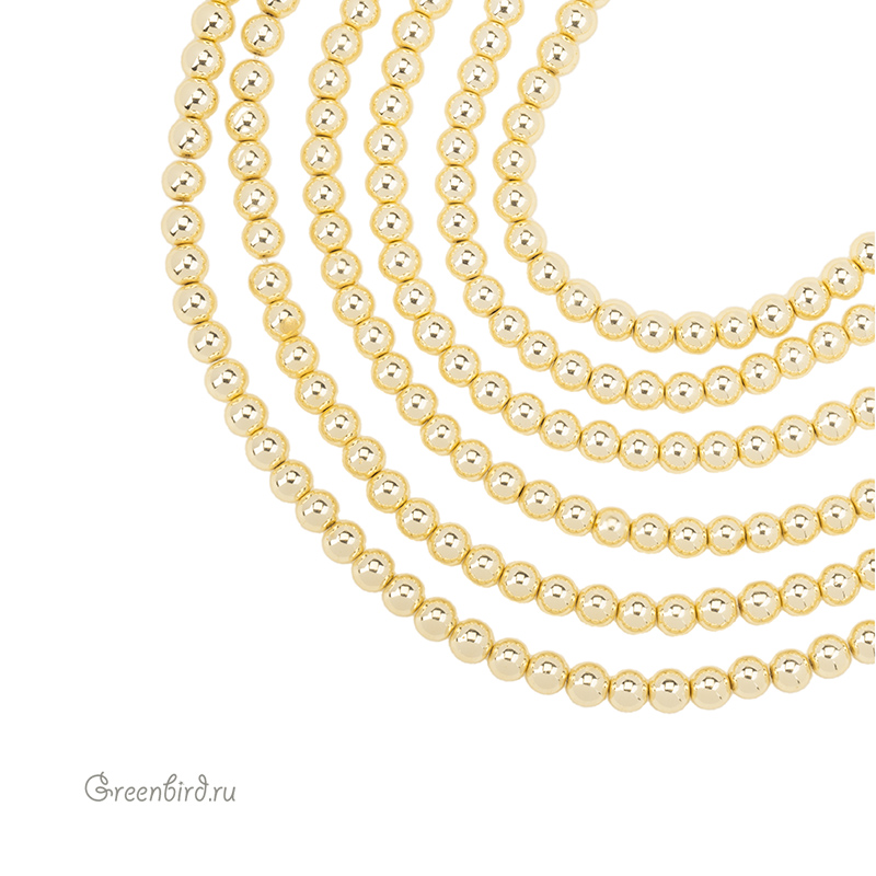 Из-за особенностей нанесения цветного металлизированного покрытия в нитях может присутствовать склеенность некоторых бусин, неоднородность и пористость покрытия в местах соприкосновения бусин, а также небольшие потертости.