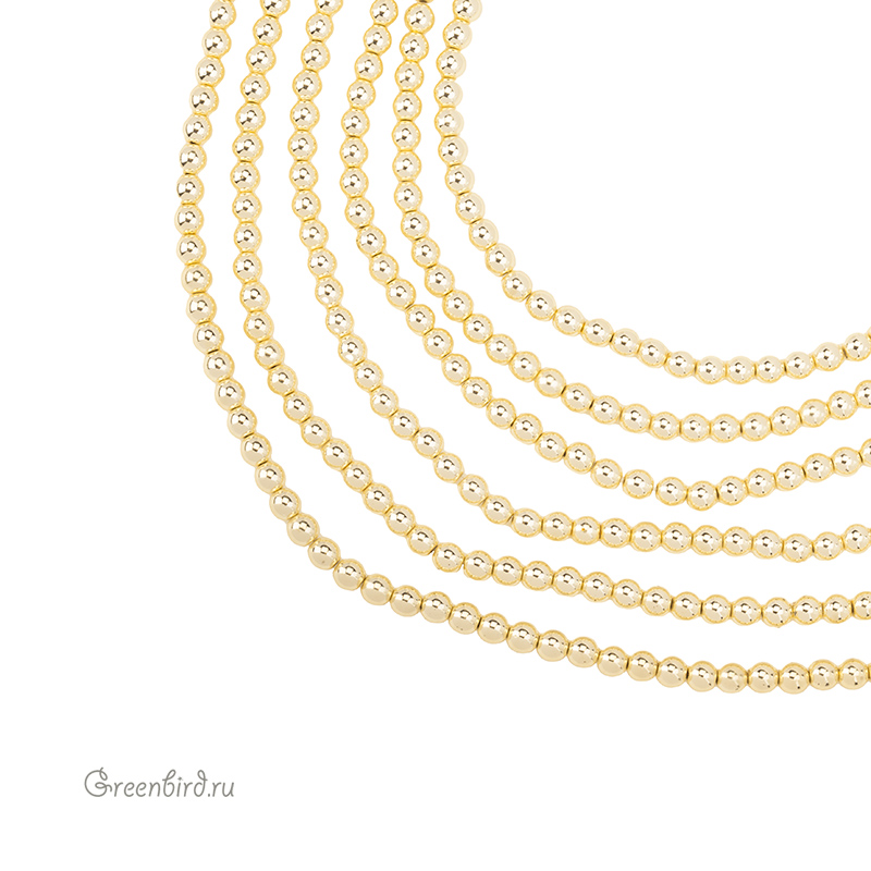 Из-за особенностей нанесения цветного металлизированного покрытия в нитях может присутствовать склеенность некоторых бусин, неоднородность и пористость покрытия в местах соприкосновения бусин, а также небольшие потертости.