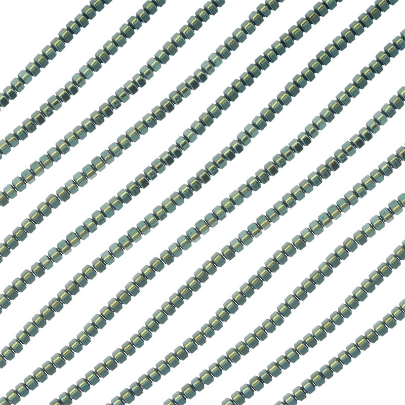 Из-за особенностей нанесения цветного металлизированного покрытия в нитях может присутствовать склеенность некоторых бусин, неоднородность и пористость покрытия в местах соприкосновения бусин, а также небольшие потертости.