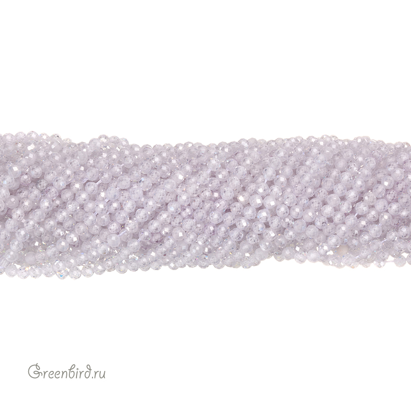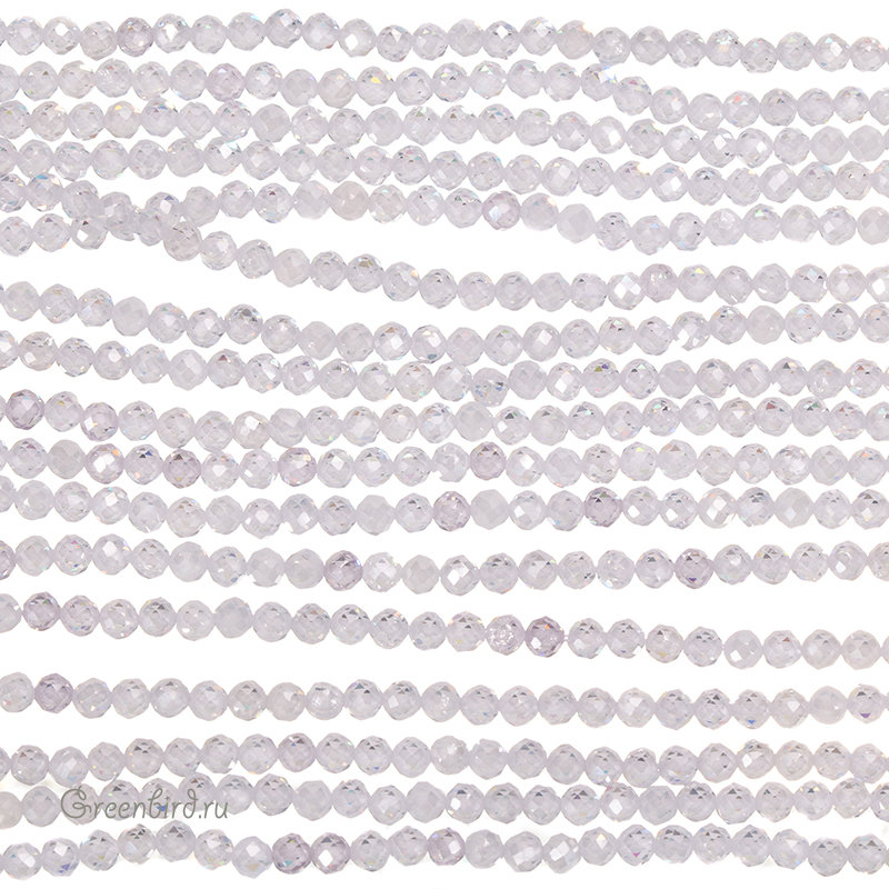 Бусины Циркон (фианит или кубический цирконий) ювелирной огранки. Материал: синтетический камень. Цвет: белый (прозрачный). Размер: 3,2 х 3,1 мм, диаметр отверстия: 0,5 мм. Производство: Китай. Цена указана за нить 37-38 см (примерно 124 штуки).
