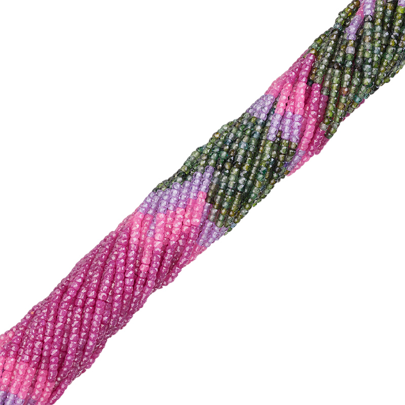 Бусины Циркон (фианит или кубический цирконий) ювелирной огранки. Форма: рондель. Материал: синтетический камень. Цвет: разноцветный. Размер: примерно 3 x 2,5 мм, диаметр отверстия: 0,5 мм. Производство: Китай. Цена указана за нить 37-38 см (примерно 165 штук).