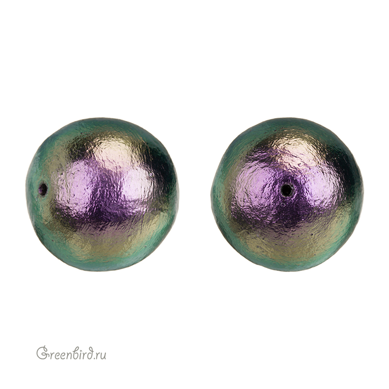 Бусины Cotton Pearl (прессованный хлопок с покрытием). Цвет: Rich Green Black (темно-серый с выраженным эффектом Iridescent, переливающимся зеленоватым и розовато-лиловым отливом). Размер: 23,4 х 24,6 мм, отверстие: 1,3-1,4 мм. Размеры могут незначительно отличаться. Производство: Япония. Цена указана за 1 шт.