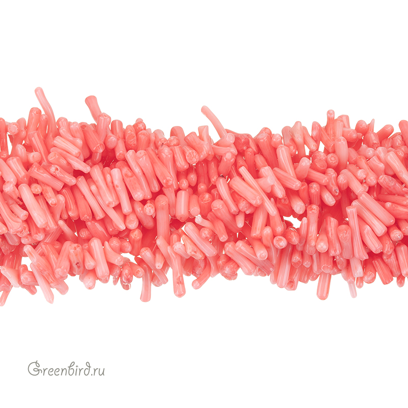 Коралл натуральный, окрашенный, необработанный - мелкие кусочки, по форме напоминающие неоднородные палочки. Размер примерно от 5 мм до 19 мм, толщина примерно от 1,8 до 3,5 мм, отверстие: 0,6 мм. Цвет: коралловый. Цена указана за нить 39-40 см.