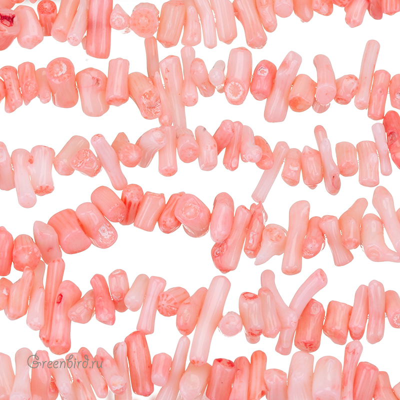 Коралл натуральный, окрашенный, необработанный - мелкие кусочки, по форме напоминающие неоднородные палочки. Размер примерно от 5 мм до 19 мм, толщина примерно от 1,8 до 3,5 мм, отверстие: 0,6 мм. Цвет: розово-персиковый. Цена указана за нить 39-40 см.