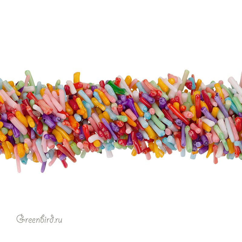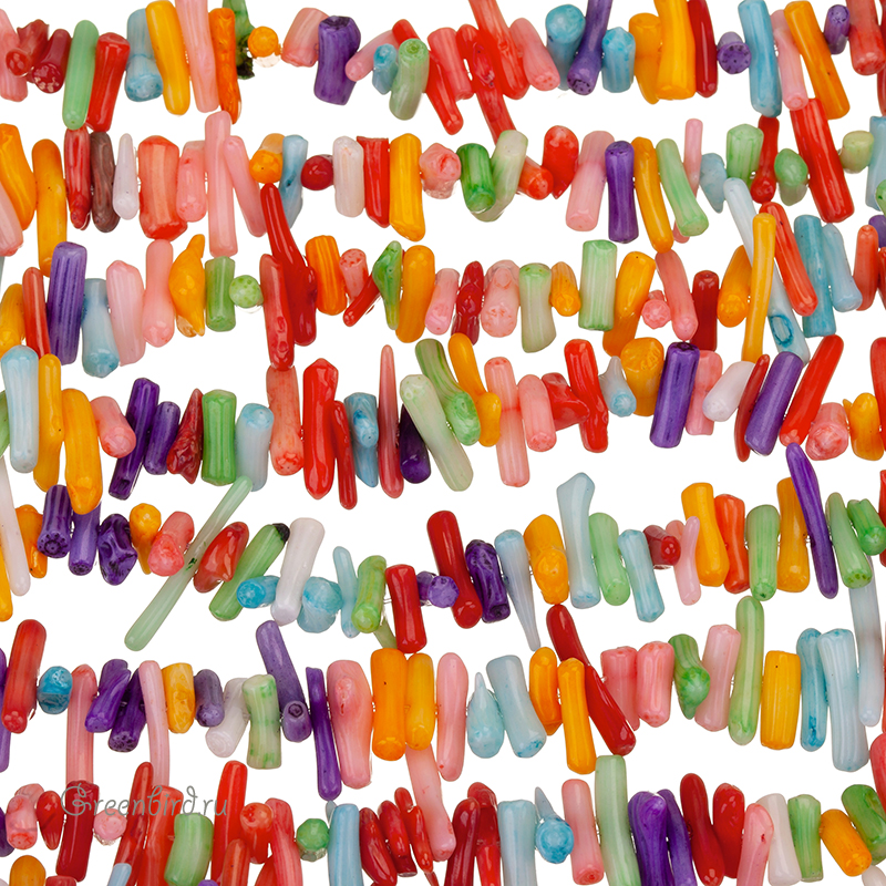 Коралл натуральный, окрашенный, необработанный - мелкие кусочки, по форме напоминающие неоднородные палочки. Размер примерно от 5 мм до 19 мм, толщина примерно от 1,8 до 3,5 мм, отверстие: 0,6 мм. Цвет: разноцветный. Цена указана за нить 39 см.