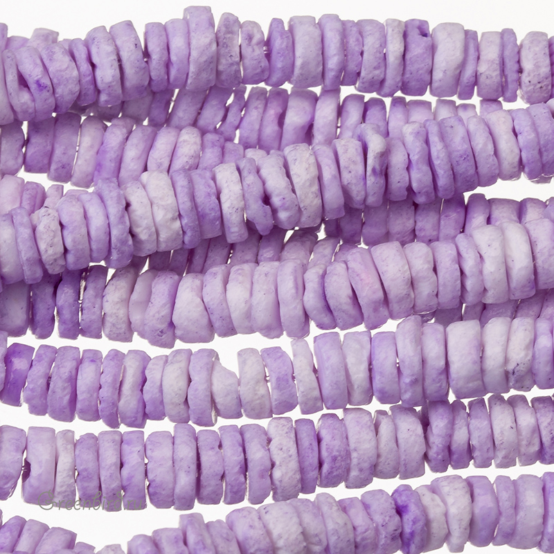 Бусины из натурального ракушечника в форме дисков. Цвет: сиреневый. Размер: 5-6,5 мм, толщина: 1,4-2,8 мм, отверстие: 0,9-1 мм. Обратите внимание: покрытие не устойчивое. Избегайте сильного трения и контакта с водой. Из-за природных особенностей материала размеры и оттенки бусин могут незначительно отличаться. Цена указана за нить 38 см (примерно 200 штук).