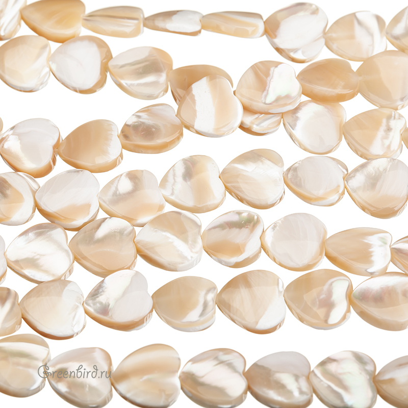 Бусины из натурального перламутра в форме сердца. Цвет: кофейный, крем-брюле с переливами, с белыми прожилками и вкраплениями. Возможны небольшие неровности и царапины естественного происхождения. Размер: примерно 10,2 мм, толщина: от 2,3 до 3,8 мм, отверстие: 0,6 мм. Из-за особенностей материала бусины незначительно отличаются по рисунку, вы получите бусину случайного вида. Цена указана за 1 шт.