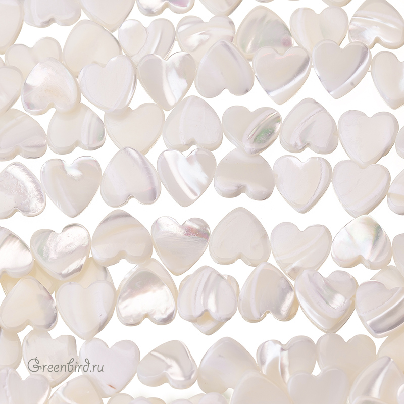 Бусины из натурального перламутра в форме сердца. Отверстие у бусин находится по горизонтали. Цвет: жемчужно-белый или рисовый с переливами. Возможны небольшие неровности, сколы и царапины естественного происхождения. Размер: 10 х 10 мм, отверстие: 0,5 мм. Из-за природных особенностей материала размеры и оттенки бусин могут незначительно отличаться. Цена указана за 1 штуку.