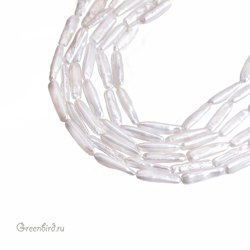 Жемчуг пресноводный культивированный (выращенный). Барочный жемчуг прямоугольной формы на основе плоских заготовок из пресованного перламутра, имеет неровности и наплывы, отверстие расположено вдоль бусины. Средние размеры: длина от 22 до 24 мм, ширина примерно от 5,6 до 7 мм, толщина различается по всей длине бусины - от 3 до 5,5 мм . Цвет: натуральный жемчужный белый. Жемчужины незначительно отличаются по форме и размеру, при заказе вы получите жемчужину случайной формы. Производство: Китай. Цена указана за 1 шт.