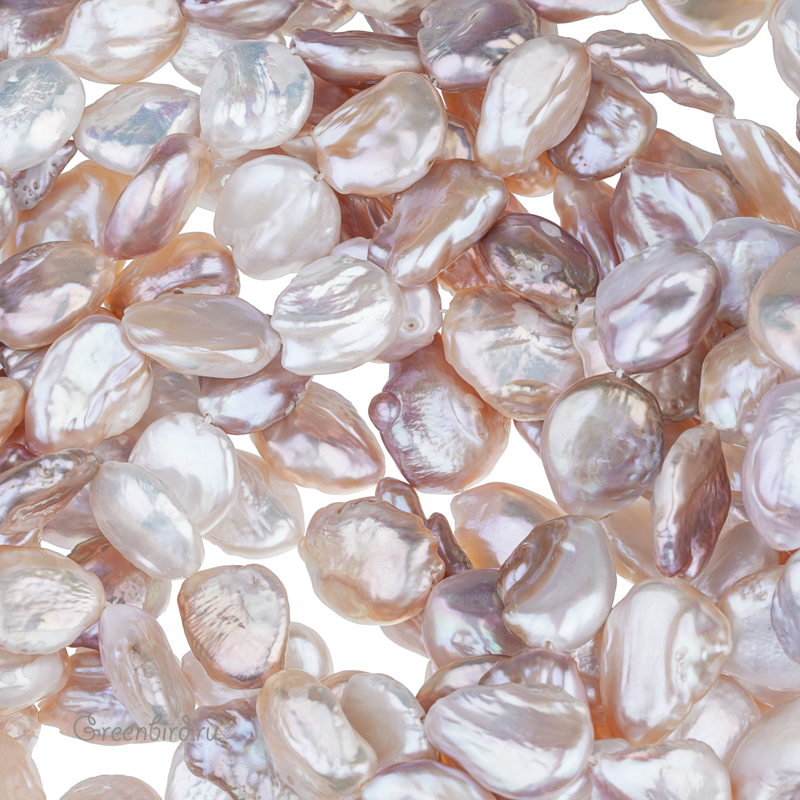 Жемчуг пресноводный культивированный (выращенный). Объемный, умеренно складчатый барочный жемчуг сложной формы (в основе – круглые заготовки), иногда с выраженной текстурой. Может иметь мелкие каверны и пятна. Размер примерно от 19 х 17 до 29,3 х 20,4 мм, толщина от 6,9 до 13,8 мм (отдельные жемчужины могут быть немного больше в одном из измерений), отверстие: 0,7-1,1 мм. Цвет: пыльная роза, персиковый, золотисто-розовый, светло-оранжевый, с выраженным блеском или перламутровыми переливами; возможны переходы и смешения цвета. При заказе вы получите жемчужину случайной формы и цвета. Цена указана за 1 шт.
