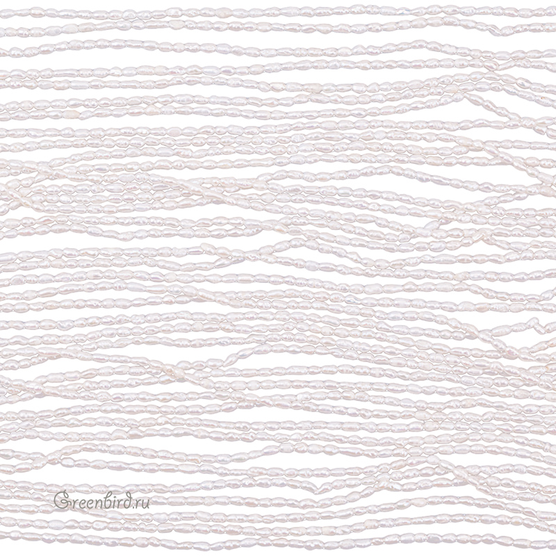 Жемчуг пресноводный культивированный (выращенный). "Рис", жемчуг овальной или удлиненной формы, вытянутый вдоль отверстия. Может иметь "поясок" или несколько, также обычно имеет заметные поперечные полоски. Средний размер: 3 х 2 мм (в длину примерно 2,8-3,3 мм, редко до 4 мм, толщина от 1,8 до 2,2 мм), отверстие: 0,5-0,7 мм. Цвет: молочный, светло-кремовый, кремовый, топленое молоко, редко жемчужно-белый. Из-за природных особенностей материала размеры и оттенки жемчужин могут незначительно отличаться. Цена указана за нить (примерно 112-116 штук).