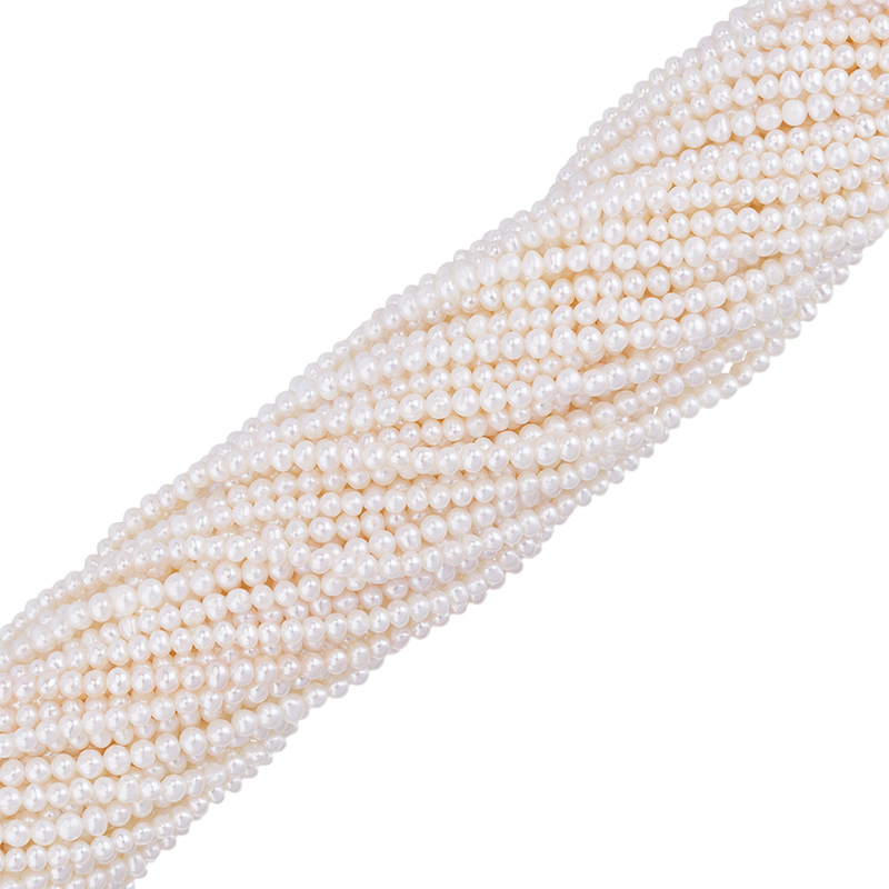 Форма бусин: "Кукуруза" – слегка приплюснутые жемчужины, как диски или рондели, вытянутые поперек отверстия. Могут иметь один или несколько "поясков", а также характерные поперечные полосы. Средний размер: 3 × 3,5 мм, диаметр отверстия: 0,8 мм. Цвет: натуральный жемчужный, кремовый.