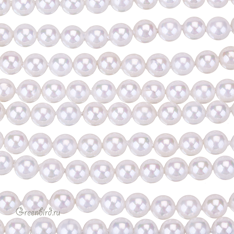 Искусственный жемчуг "Майорка". Форма - классическая круглая. Материал: кристальная бусина-основа, покрытая цветным слоем. Размер: 6,5 мм, отверстие: 0,6 мм. Цвет: белый. Цена указана за нить 39-40 см (примерно 61 штук).