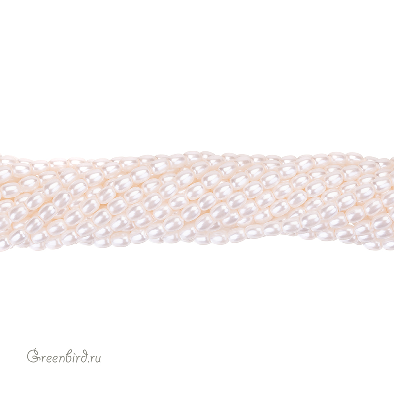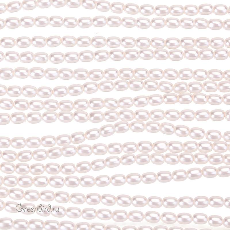 Искусственный жемчуг "Майорка" в форме риса. Жемчуг овальной или удлиненной формы, вытянутый вдоль отверстия. Материал: кристальная бусина-основа, покрытая цветным слоем. Размер: 4 х 3,2 мм, отверстие: 0,6 мм. Цвет: белый, розовато-кремовый. Цена указана за нить 39-40 см (примерно 100 штук).