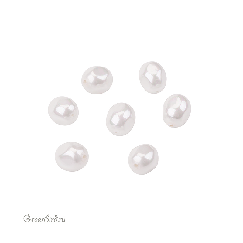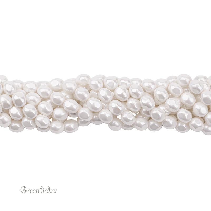 Искусственный жемчуг "Майорка". Форма - граненый овал (6 граней с трех строн, примерно 5 x 4 мм). Материал: кристальная бусина-основа, покрытая цветным слоем. Размер: примерно 12 x 10 мм, отверстие: 0,7 мм. Цвет: белый. Цена указана за 1 шт.