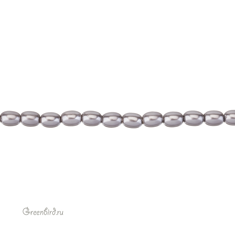 Искусственный жемчуг "Майорка" в форме риса. Жемчуг овальной или удлиненной формы, вытянутый вдоль отверстия. Материал: кристальная бусина-основа, покрытая цветным слоем. Цвет: серый. Размер: 7 - 7,3 х 5,5 мм, отверстие: 0,6 мм. Цена указана за нить 37-39 см (примерно 54 штуки).