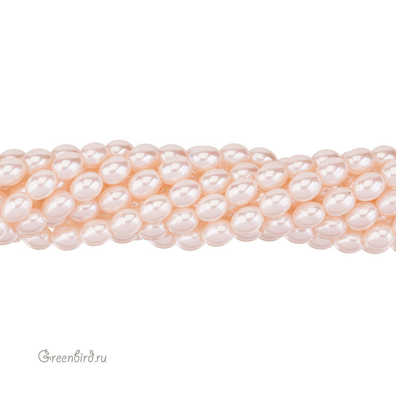 Искусственный жемчуг "Майорка" в форме риса. Жемчуг овальной или удлиненной формы, вытянутый вдоль отверстия. Материал: кристальная бусина-основа, покрытая цветным слоем. Цвет: персиковый. Размер: 8 х 6 мм, отверстие: 0,7 мм. Цена указана за нить 39-40 см (примерно 50 штук).