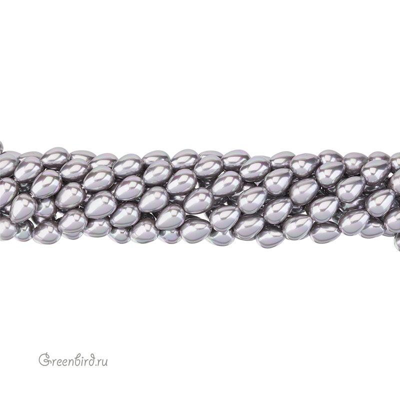 Искусственный жемчуг "Майорка". Форма - капля. Материал: кристальная бусина-основа, покрытая цветным слоем. Размер: 14 мм, толщина: 10 мм, отверстие: 1 мм. Цвет: серый. Цена указана за нить 37-39 см (примерно 25-28 штук).