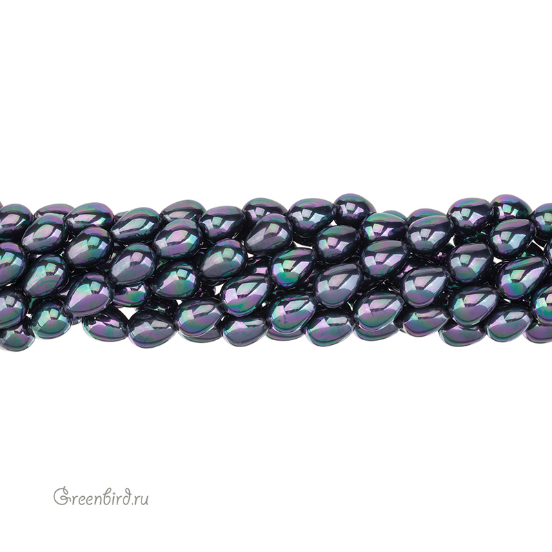 Искусственный жемчуг "Майорка". Форма - капля. Материал: кристальная бусина-основа, покрытая цветным слоем. Размер: 14 мм, толщина: 10 мм, отверстие: 1 мм. Цвет: черный с переливающимся покрытием. Цена указана за нить 37-39 см (примерно 25-28 штук).