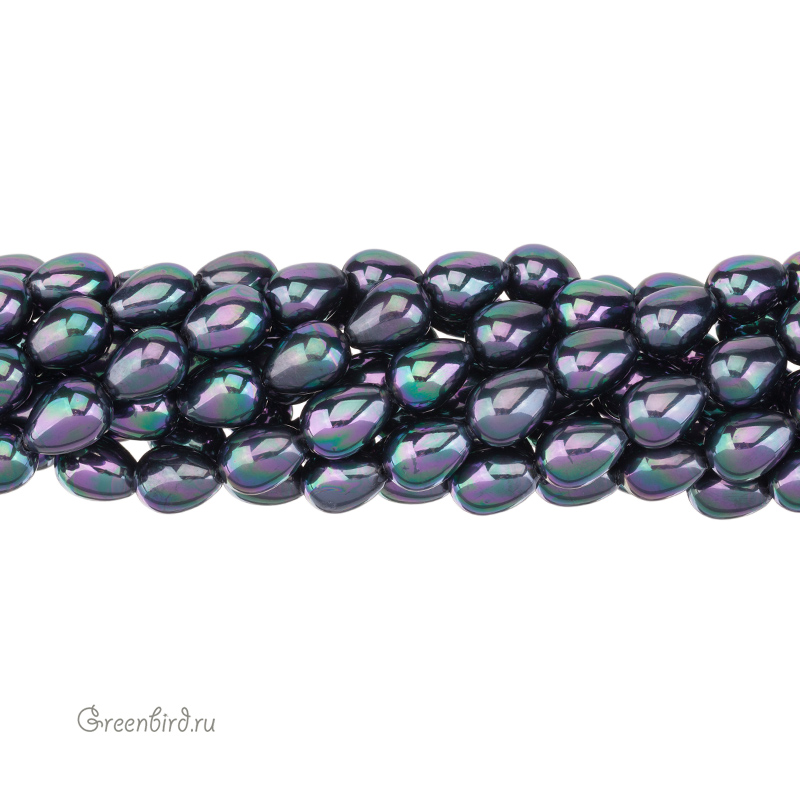 Искусственный жемчуг "Майорка". Форма - капля. Материал: кристальная бусина-основа, покрытая цветным слоем. Размер: 15-16 мм, толщина: 12 мм, отверстие: 1 мм. Цвет: черный с переливающимся покрытием. Цена указана за нить 37-39 см (примерно 26 штук).
