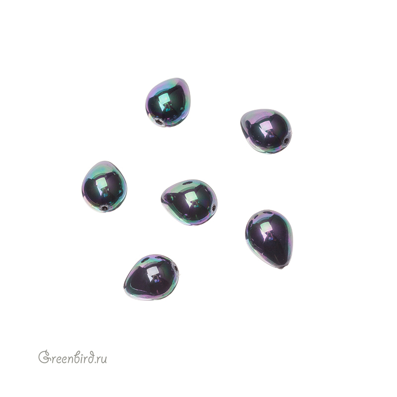 Искусственный жемчуг "Майорка". Форма - капля. Материал: кристальная бусина-основа, покрытая цветным слоем. Размер: 14 мм, толщина: 10 мм, отверстие: 1 мм. Цвет: черный с переливающимся покрытием. Цена указана за 1 шт.