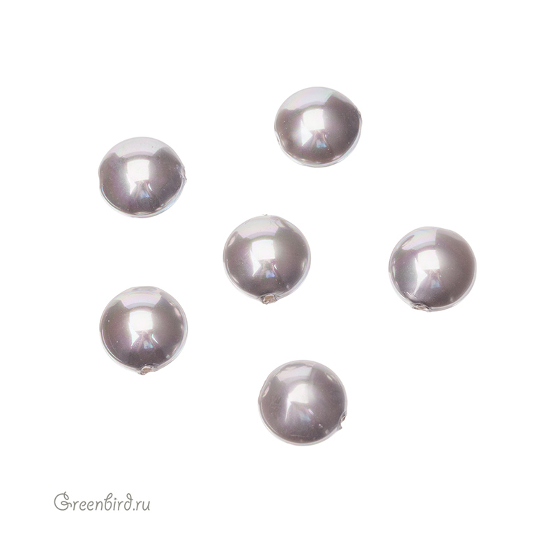 Искусственный жемчуг "Майорка". Форма - круглая плоская, "таблетка". Материал: кристальная бусина-основа, покрытая цветным слоем. Размер: 14 мм, толщина: 10 мм, отверстие: 1,4 мм. Цвет: серый. Цена указана за 1 шт.