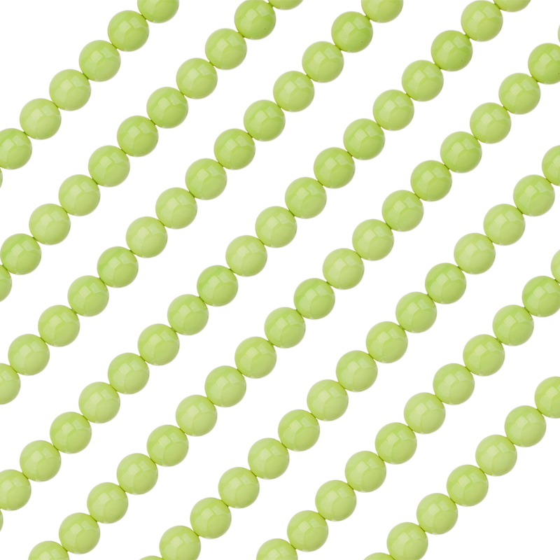 Искусственный жемчуг "Майорка". Форма - классическая круглая. Материал: кристальная бусина-основа, покрытая цветным слоем. Размер: примерно 8 мм, отверстие: 0,5 мм. Цвет: зеленый. Цена указана за нить 39-40 см (примерно 50 штук).
